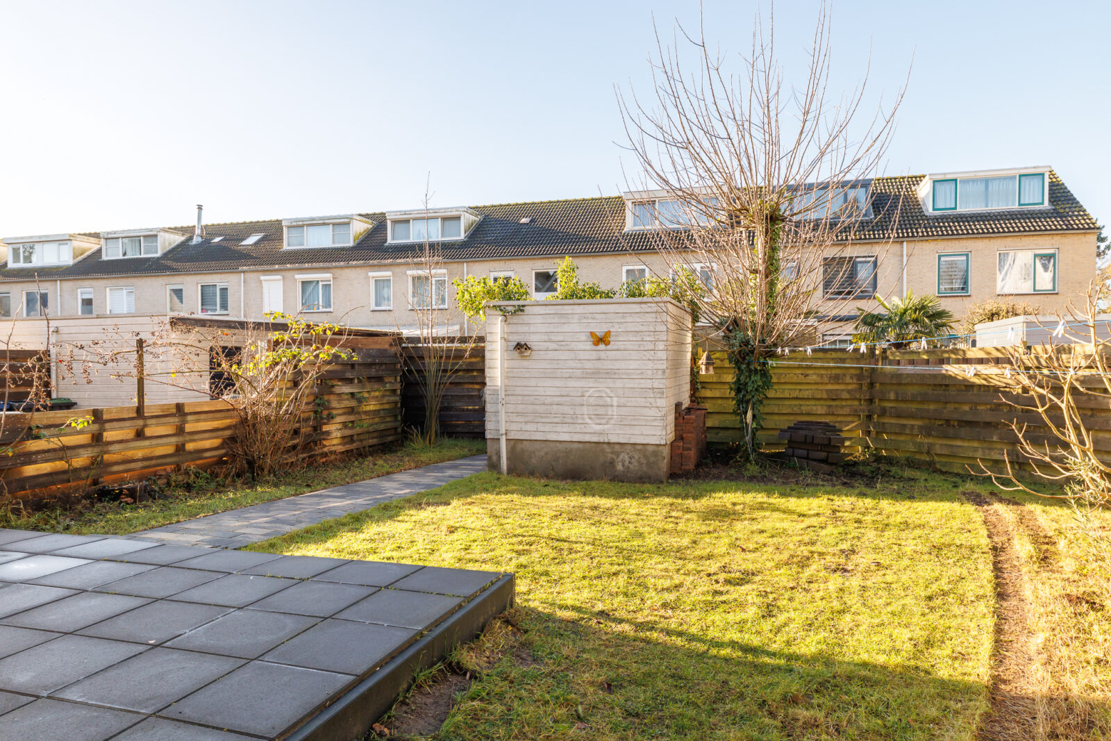 Besides the front garden there is also the deep and wide back garden conveniently located southwest, allowing you to fully enjoy the sun. At the back of the garden is a wooden shed for extra storage. The garden is accessible from both the rear and the side garden, providing added convenience and accessibility.