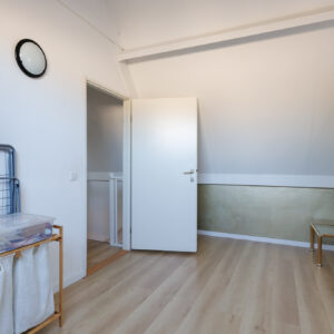 On the first floor, there's a spacious bedroom at the rear. At the front is a large open space that is currently designed for multiple purposes. This space is ideal for use as a second living room, office, or hobby room, but can also easily be converted into one or even two additional bedrooms. This floor is finished with laminate flooring.