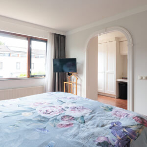A large multifunctional open space, perfect as a workplace, hobby room or extra bedroom. From here you can step straight onto the sunny roof terrace! In this space there is a custom-made wall cupboard for even more storage space.