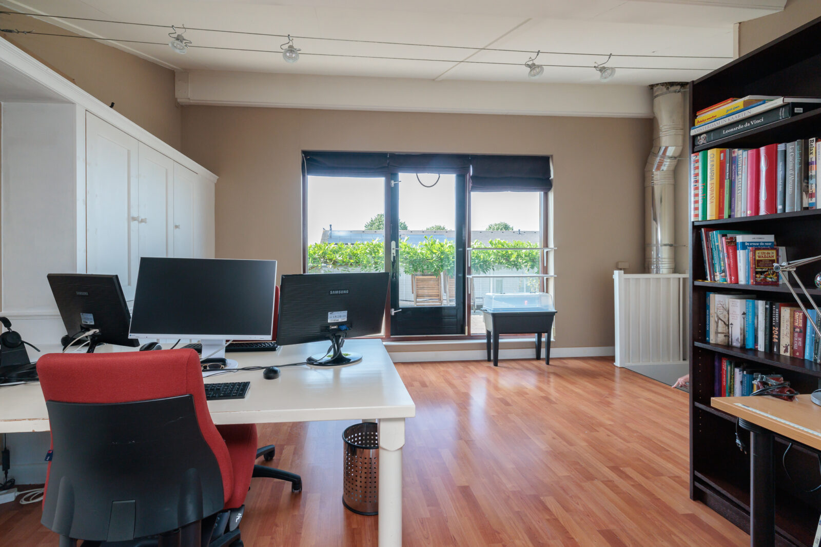Een grote multifunctionele open ruimte, perfect als werkplek, hobbyruimte of extra slaapkamer. Vanuit hier stap je zó het zonnige dakterras op! In deze ruimte is een op maat gemaakte wandkast aanwezig voor nog meer opbergruimte.